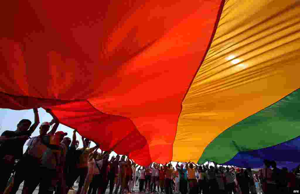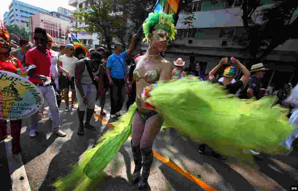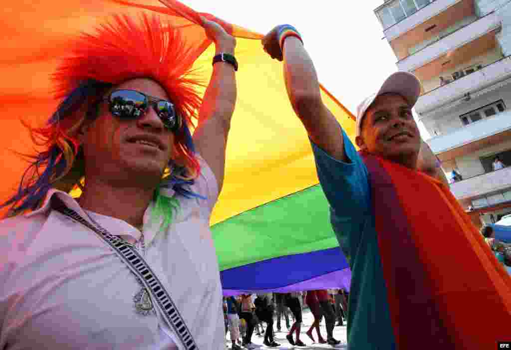 Con Mariela Castro a la cabeza y a ritmo de una conga santiaguera, marcharon por “La Rampa”, céntrica avenida de La Habana, cientos de personas en contra de la homofobia.