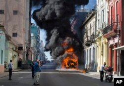 Impresionantes imágenes muestran la explosión el jueves de un autobús en una de las calles más céntricas de La Habana.