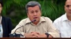Miembros del Ejército de Liberación Nacional (ELN) de Colombia, durante una conferencia de prensa en La Habana, el 11 de mayo del 2017. (Adalberto Roque / AFP).