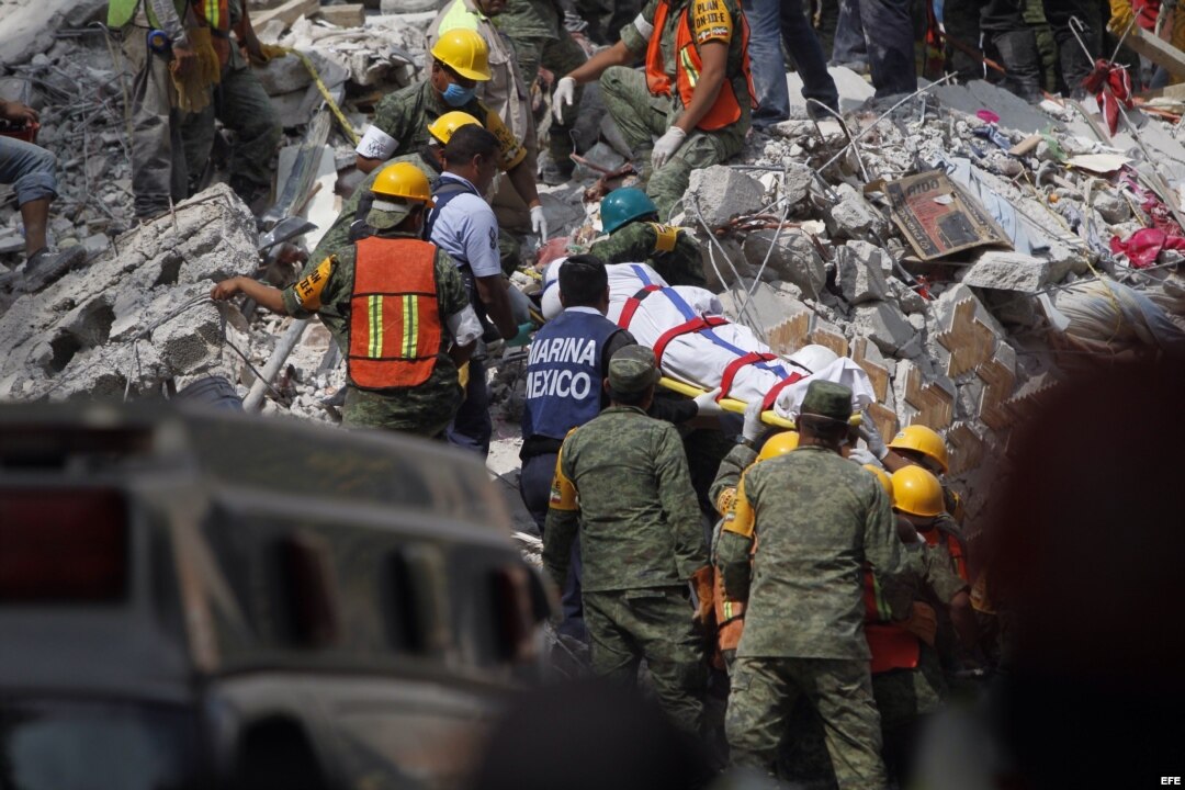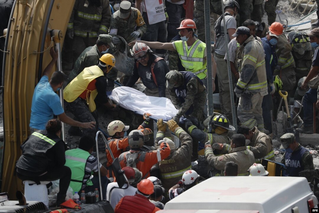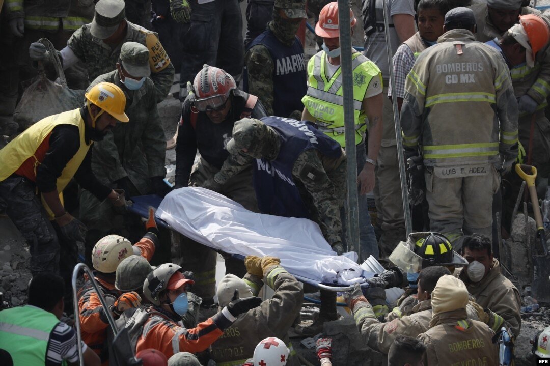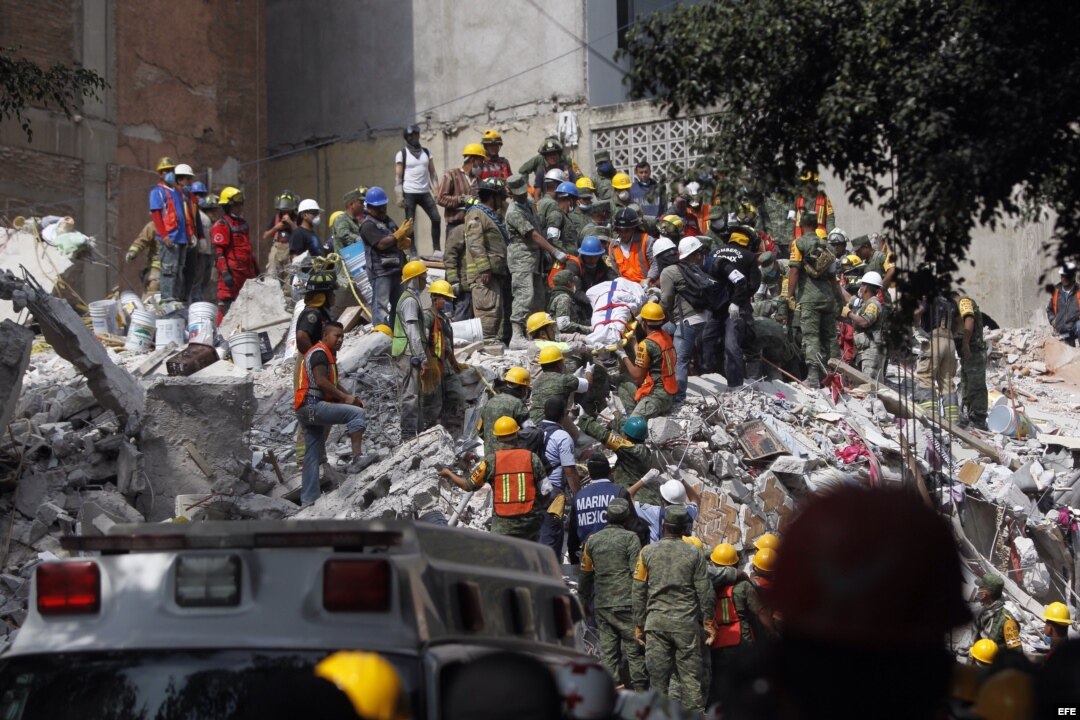 Brigadistas y voluntarios rescatan cuerpos de los edificios colapsados durante el sismo en Ciudad de México.