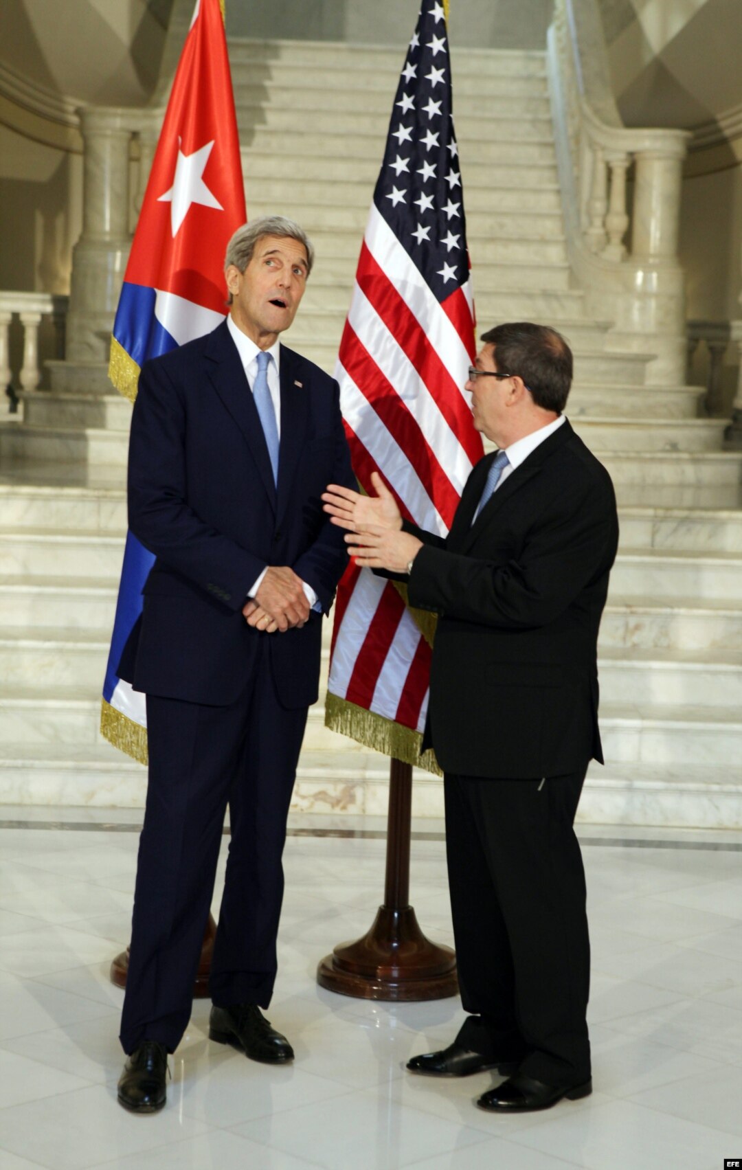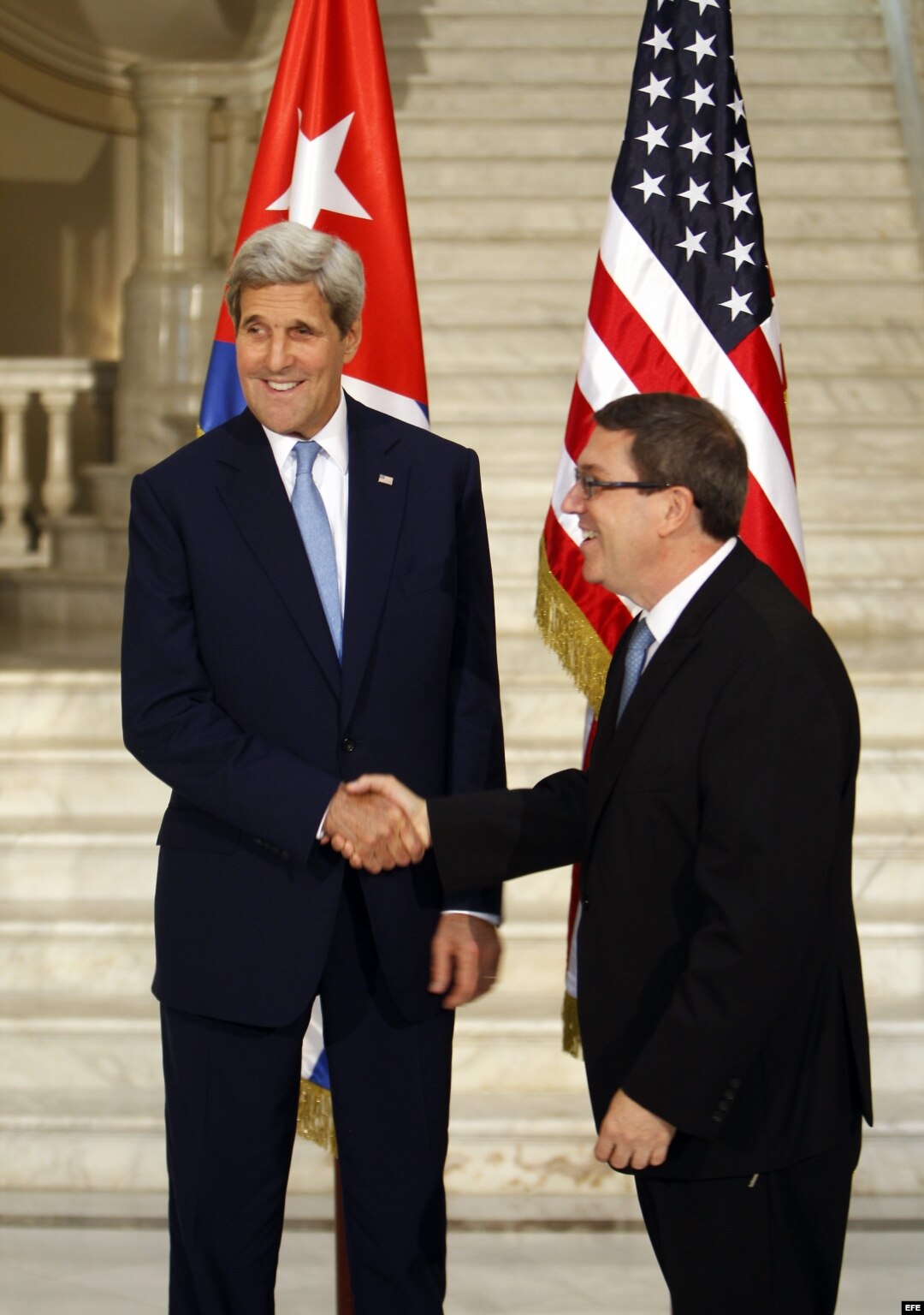 John Kerry se reúne con el canciller cubano Bruno Rodríguez (i-d), en La Habana.